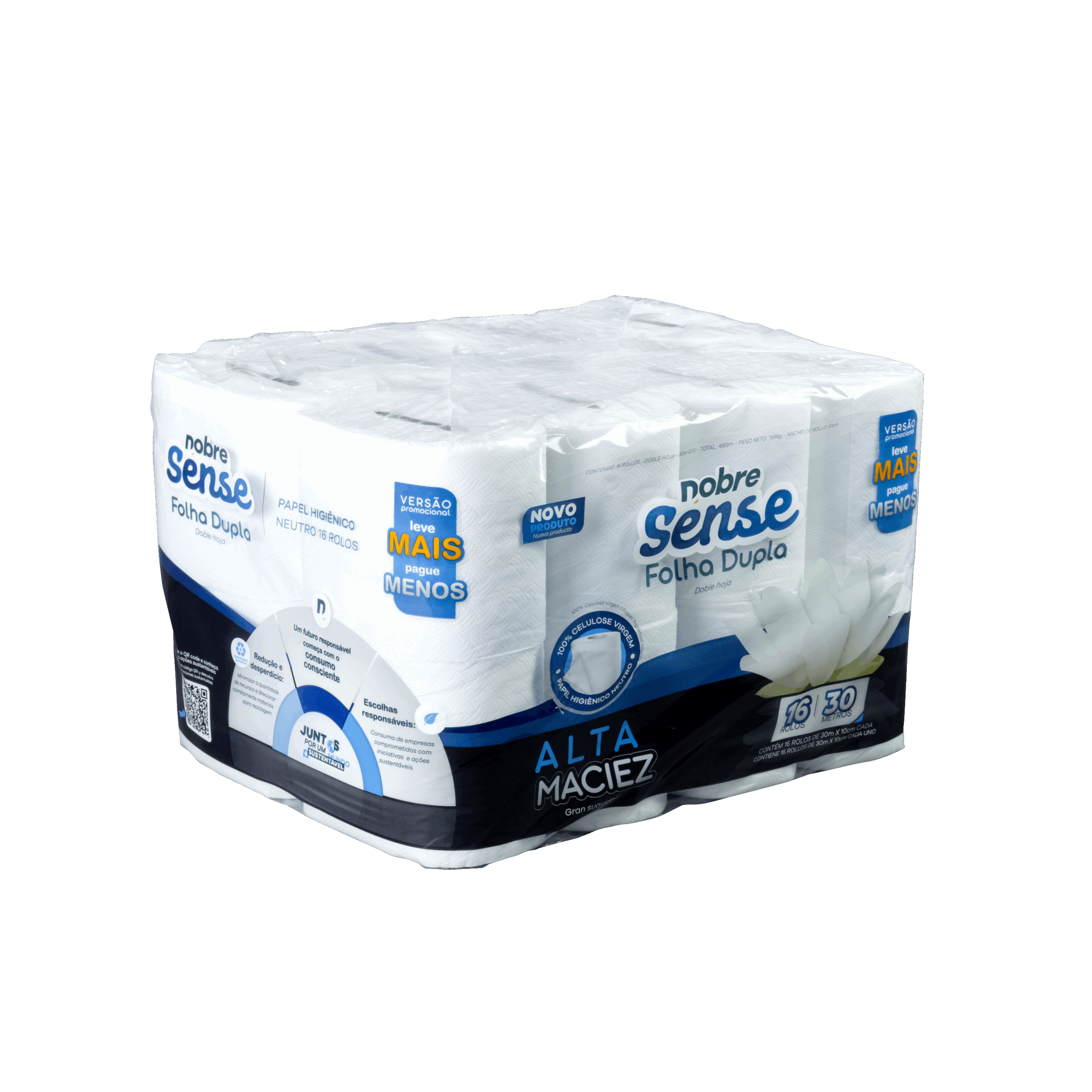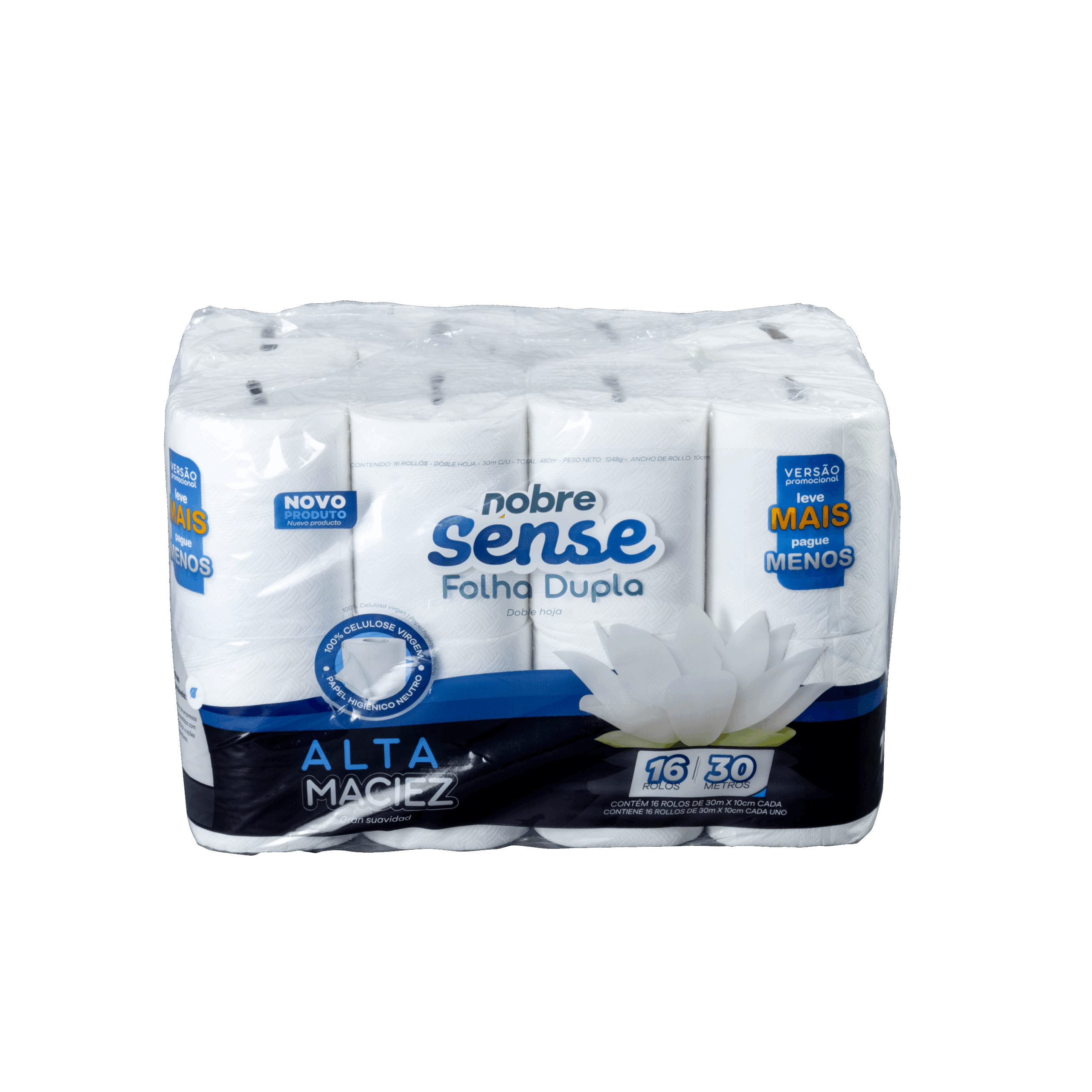 Papel higiênico 10cm x30m.(promocional fardo c/16un celulose virgem/f.dupla) Nobre Sense