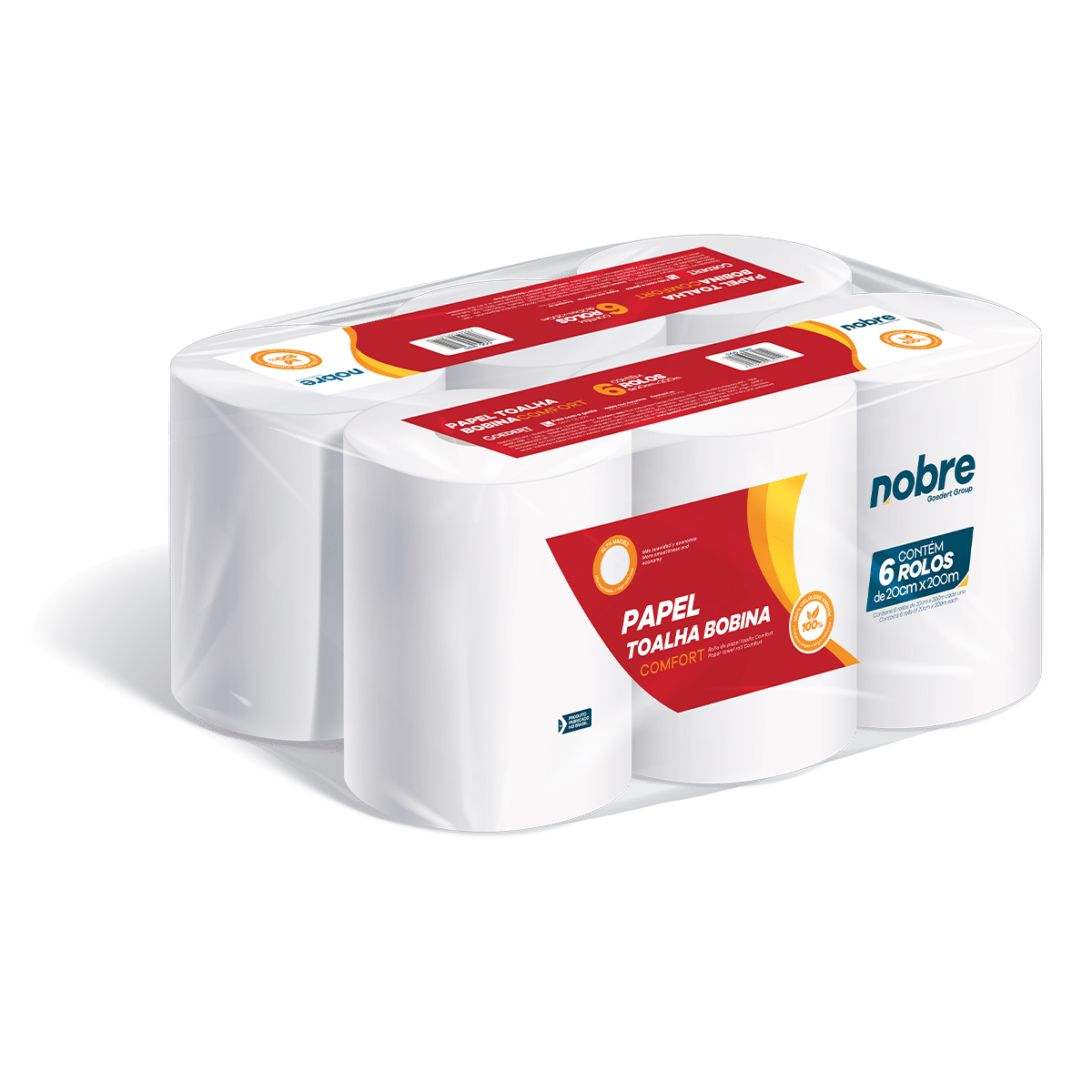 O Papel Toalha Bobina COMFORT da Nobre é ideal para quem busca eficiência e qualidade na hora da limpeza. Composto por 6 bobinas de 20cm x 200m, é produzido com celulose virgem, garantindo alta absorção e maciez.