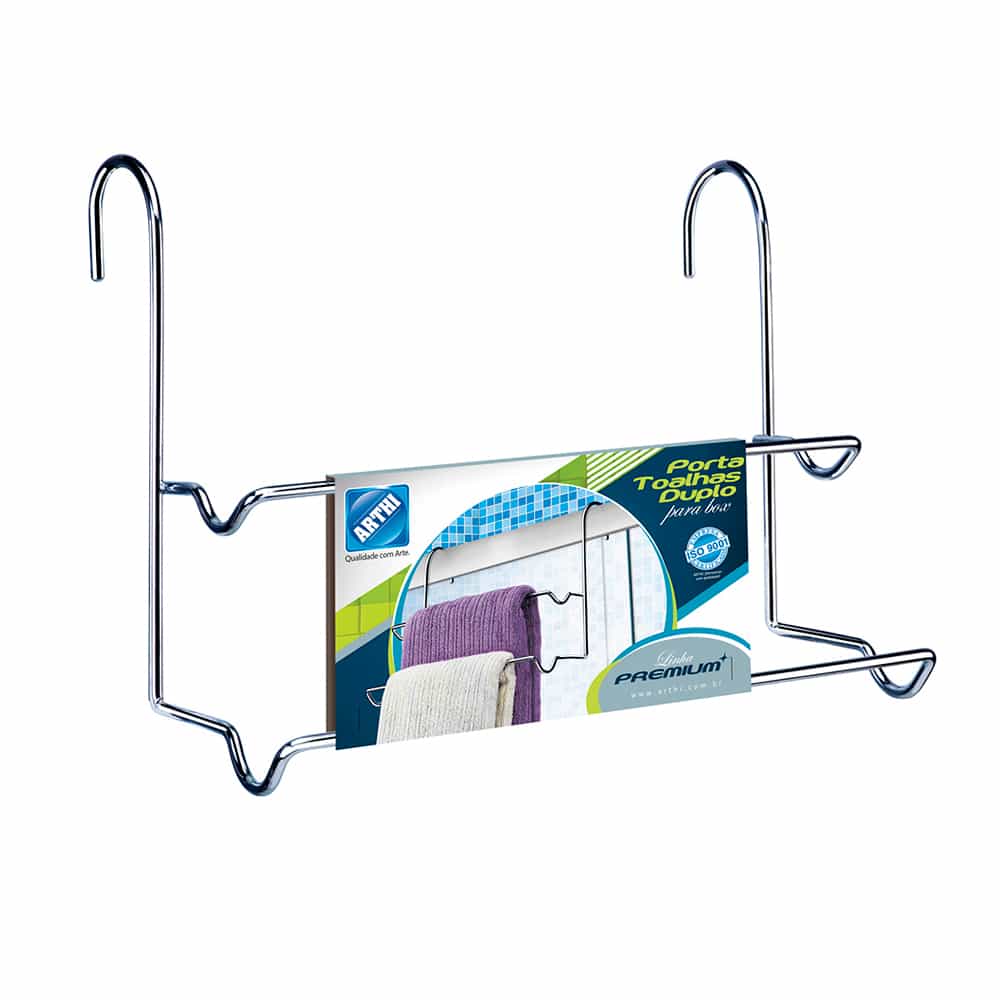 Porta toalha duplo para box. Não precisa furar e com amplo espaços entre o suporte, podendo pendurar toalhas mais grossas.