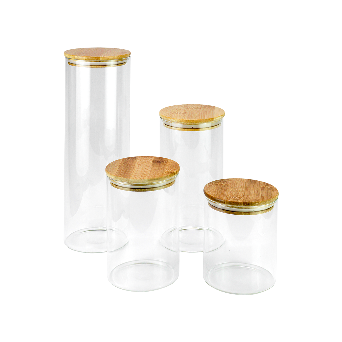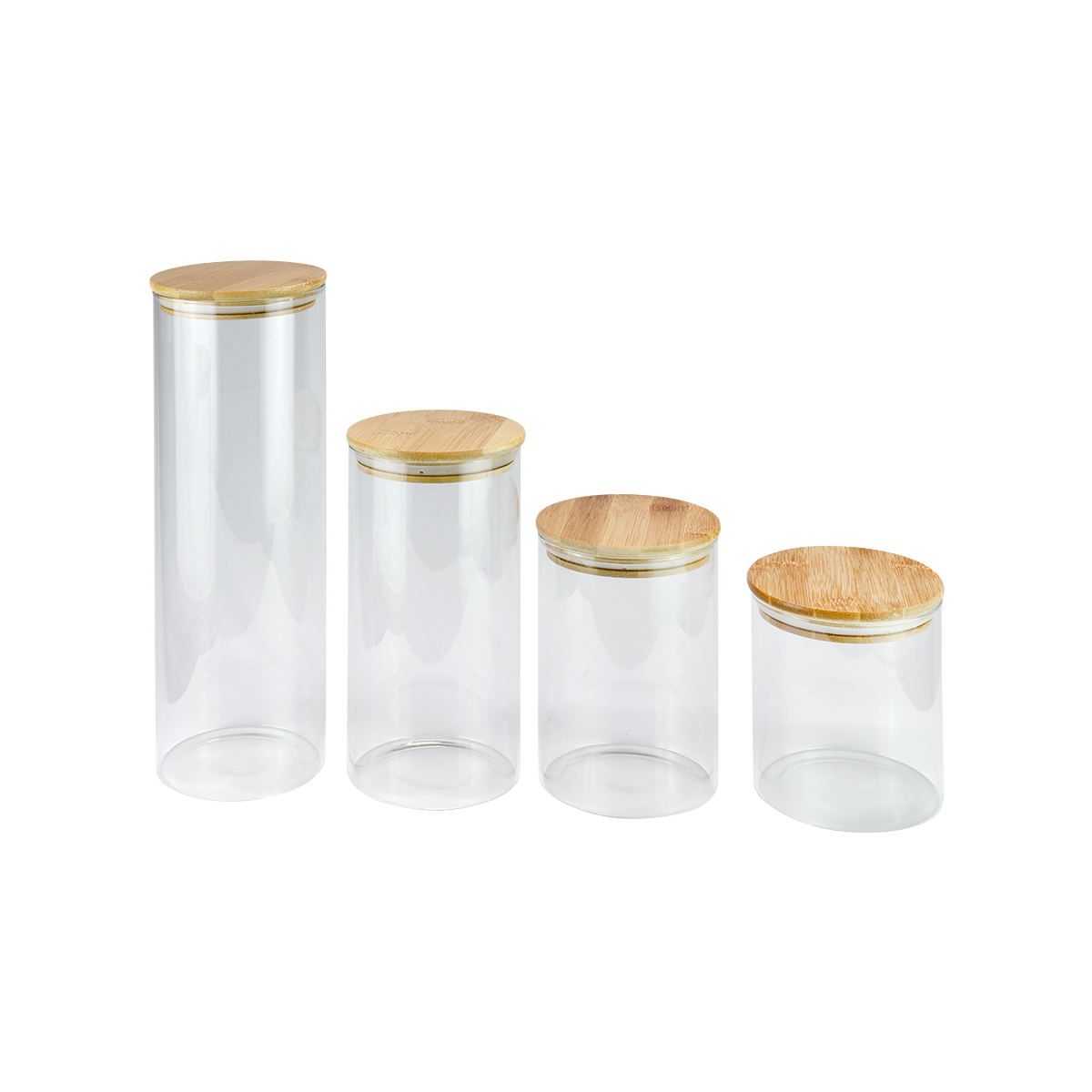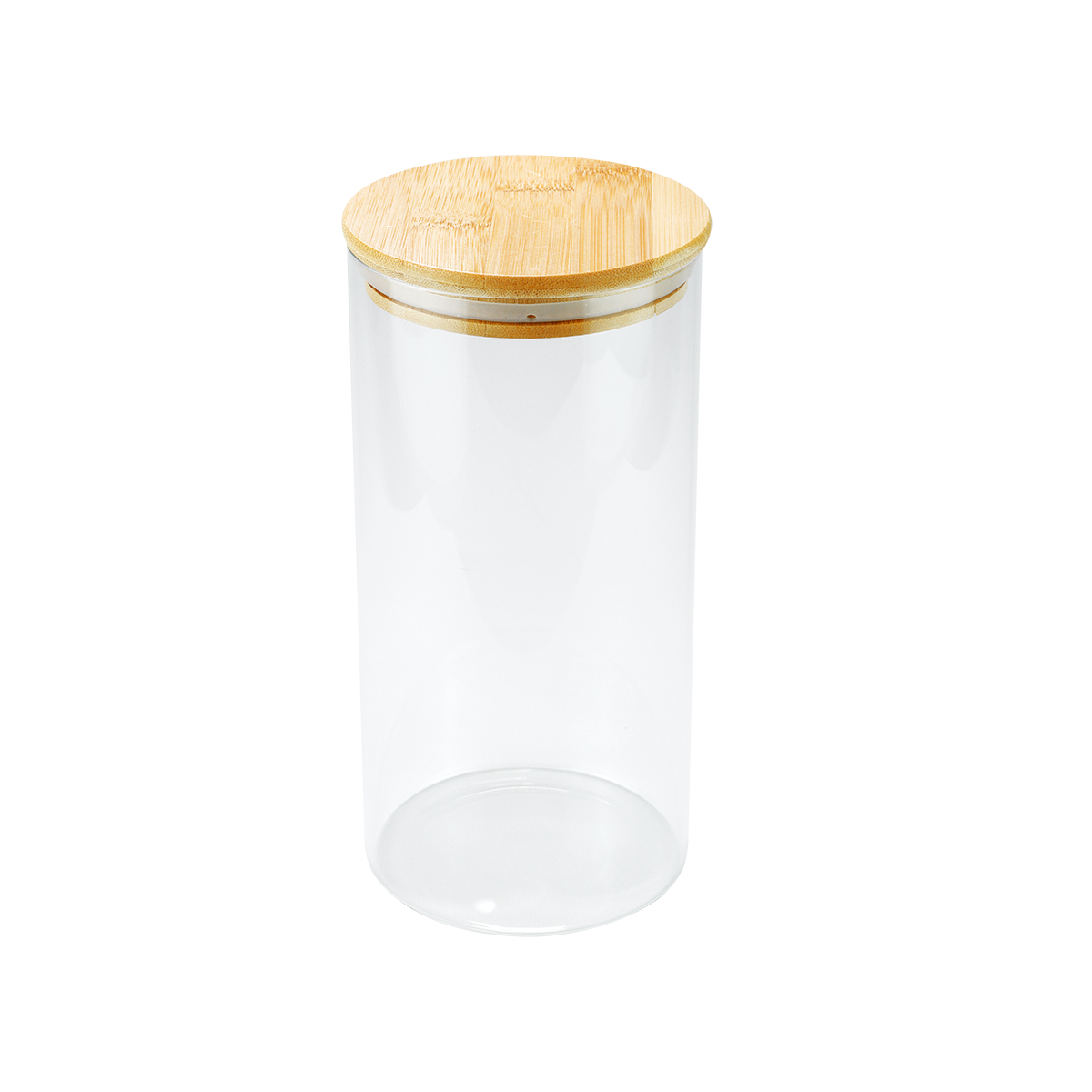 Pote em vidro redondo borossilicato c/ tampa bambu 1,3l – Global
