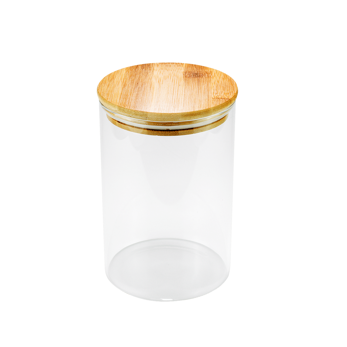 Pote em vidro redondo borossilicato c/ tampa bambu 1l – Global