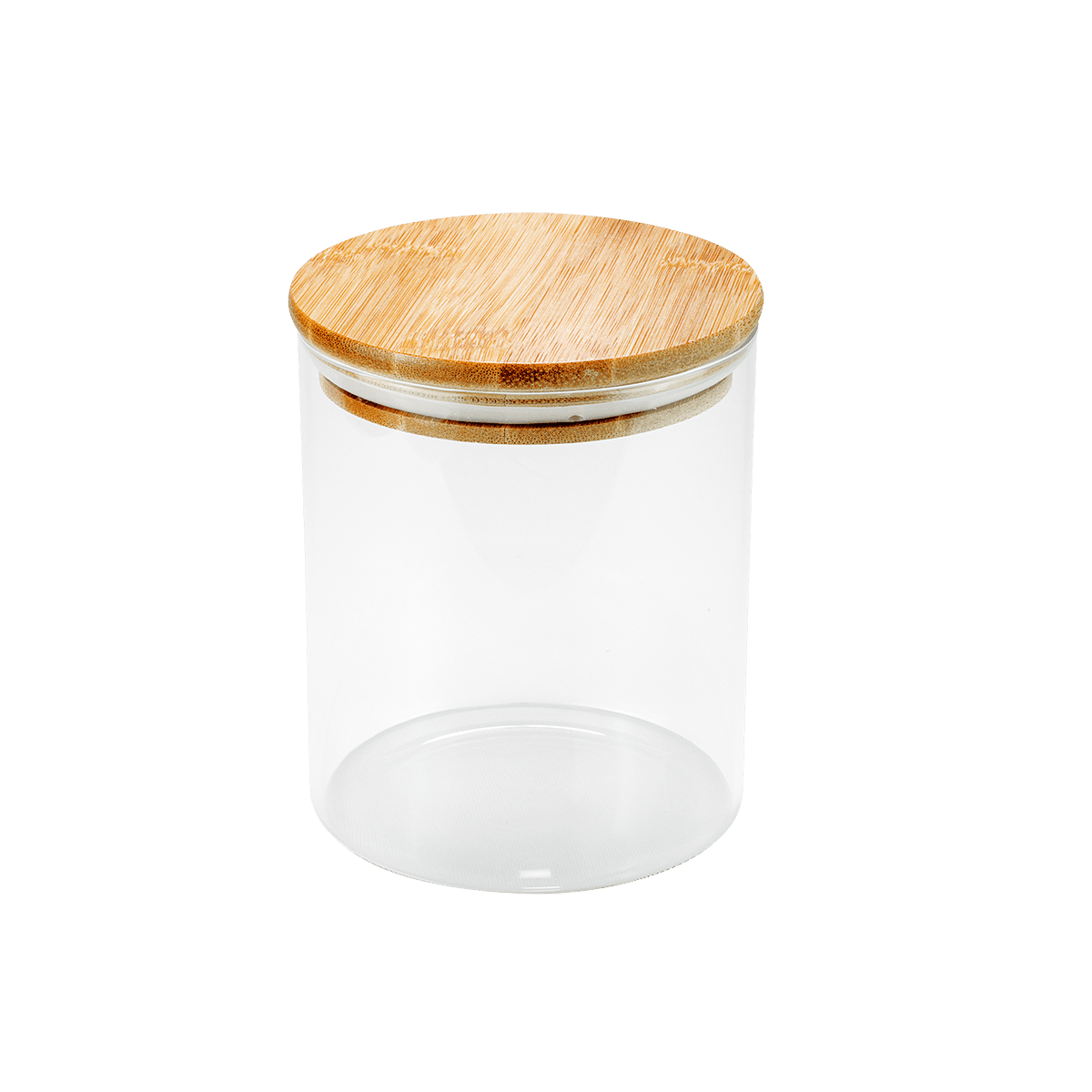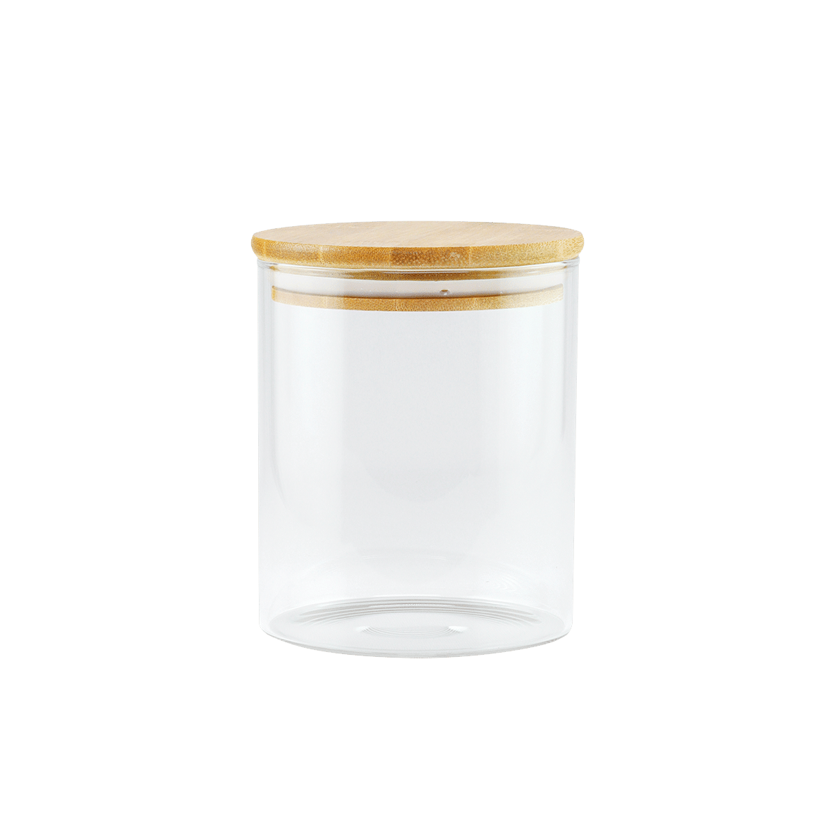 Pote em vidro redondo borossilicato c/ tampa bambu 750ml – Global