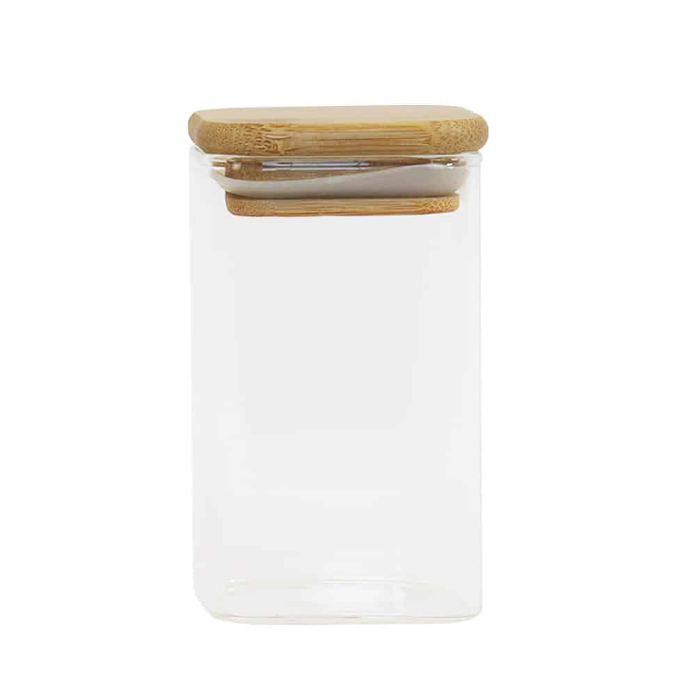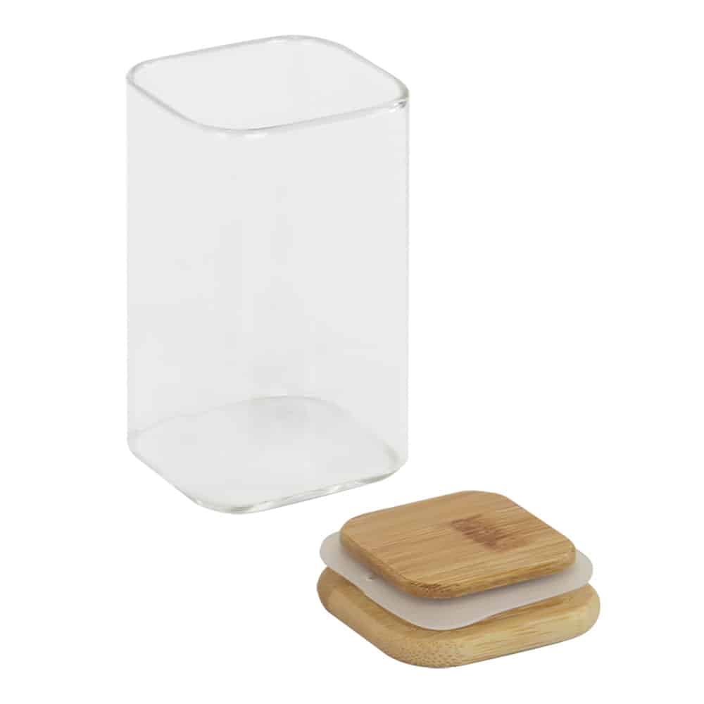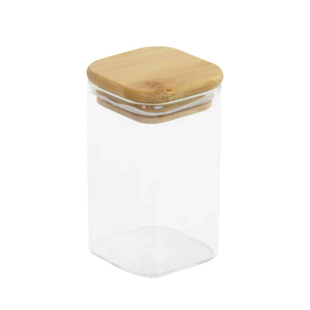 Pote hermético quadrado de vidro em borossilicato 250ml c/ tampa bamboo – Global