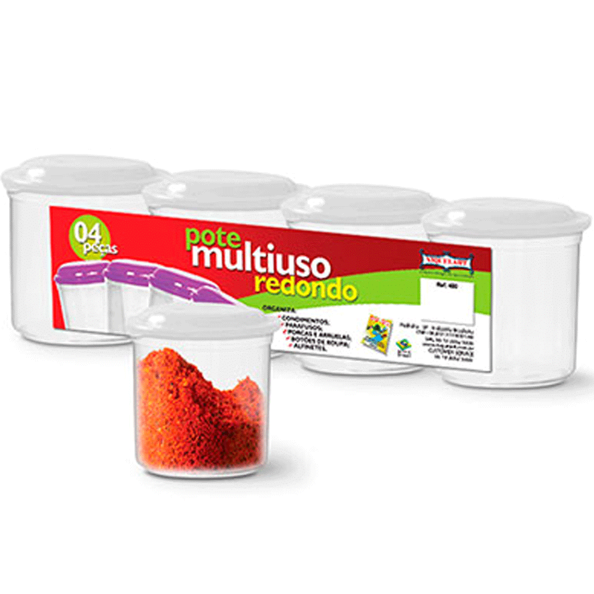 Organização e praticidade para sua rotina! O conjunto conta com 4 potes multiuso redondos, ideais para armazenar alimentos ou pequenos objetos. Compactos e funcionais, são perfeitos para facilitar o dia a dia.