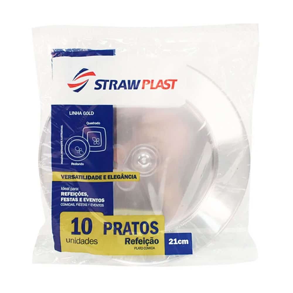 Prato Plástico Médio Redondo – 18cm. – 14 pacotes – Strawplast