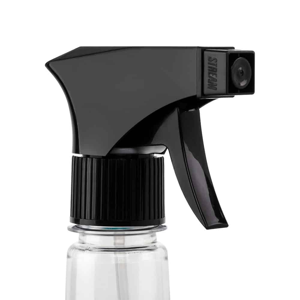 Com frasco translúcido, borrifador com válvula de regulagem para off que impede que saia o líquido ao apertar e para spray que ativa o modo borrifador.