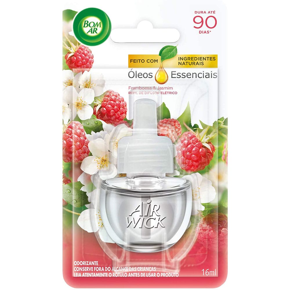 Bom Ar® Difusor Elétrico Framboesa e Jasmim perfuma continuamente qualquer ambiente.