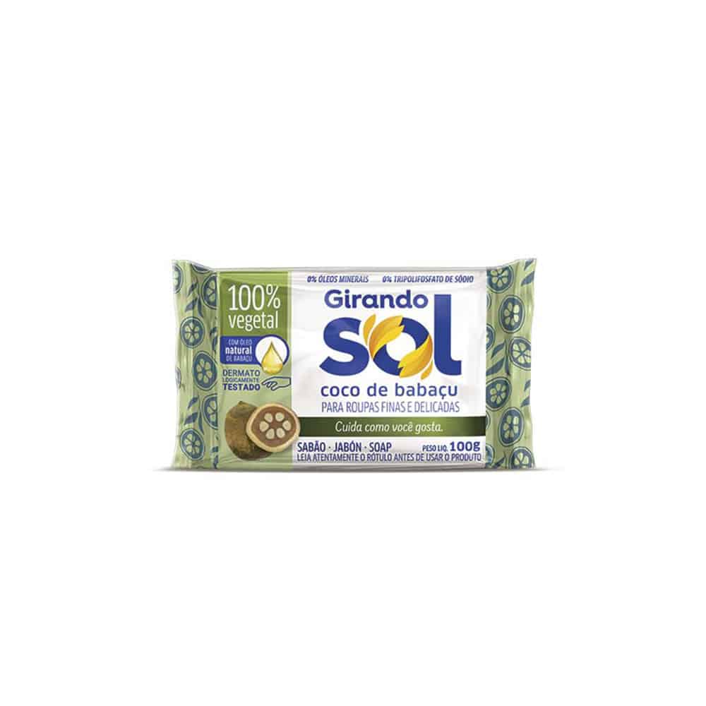 O Sabão em Barra Coco de Babaçu Girando Sol é formulado a partir de gordura animal e vegetal, aliado à agradável fragrância.