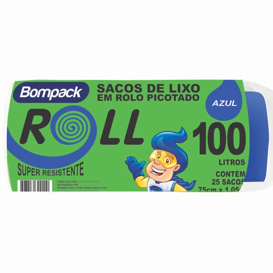 Saco de Lixo Bompack Roll Azul, produzido com polietileno de alta densidade