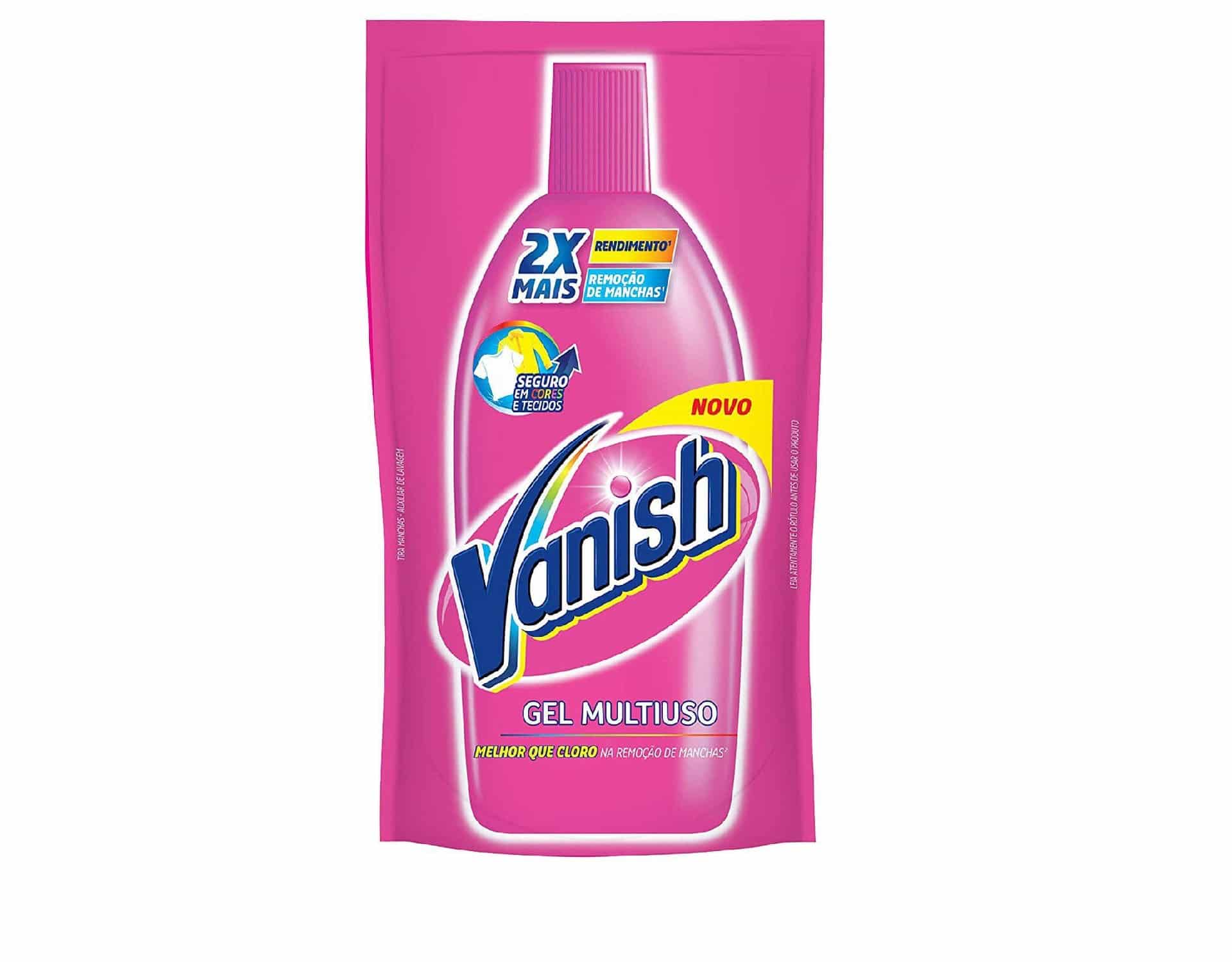 de Vanish. Agite bem até dissolver. Mergulhe as roupas e prossiga com a lavagem.