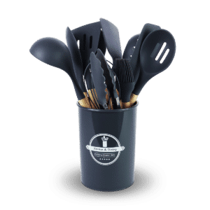 Kit utensilios de cozinha silicone e bambu (11 peças + pote organizador) – Global