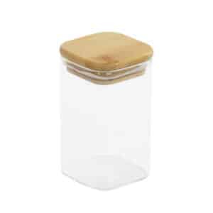 Pote em vidro borossilicato c/ tampa quadrada bambu 250ml – Global